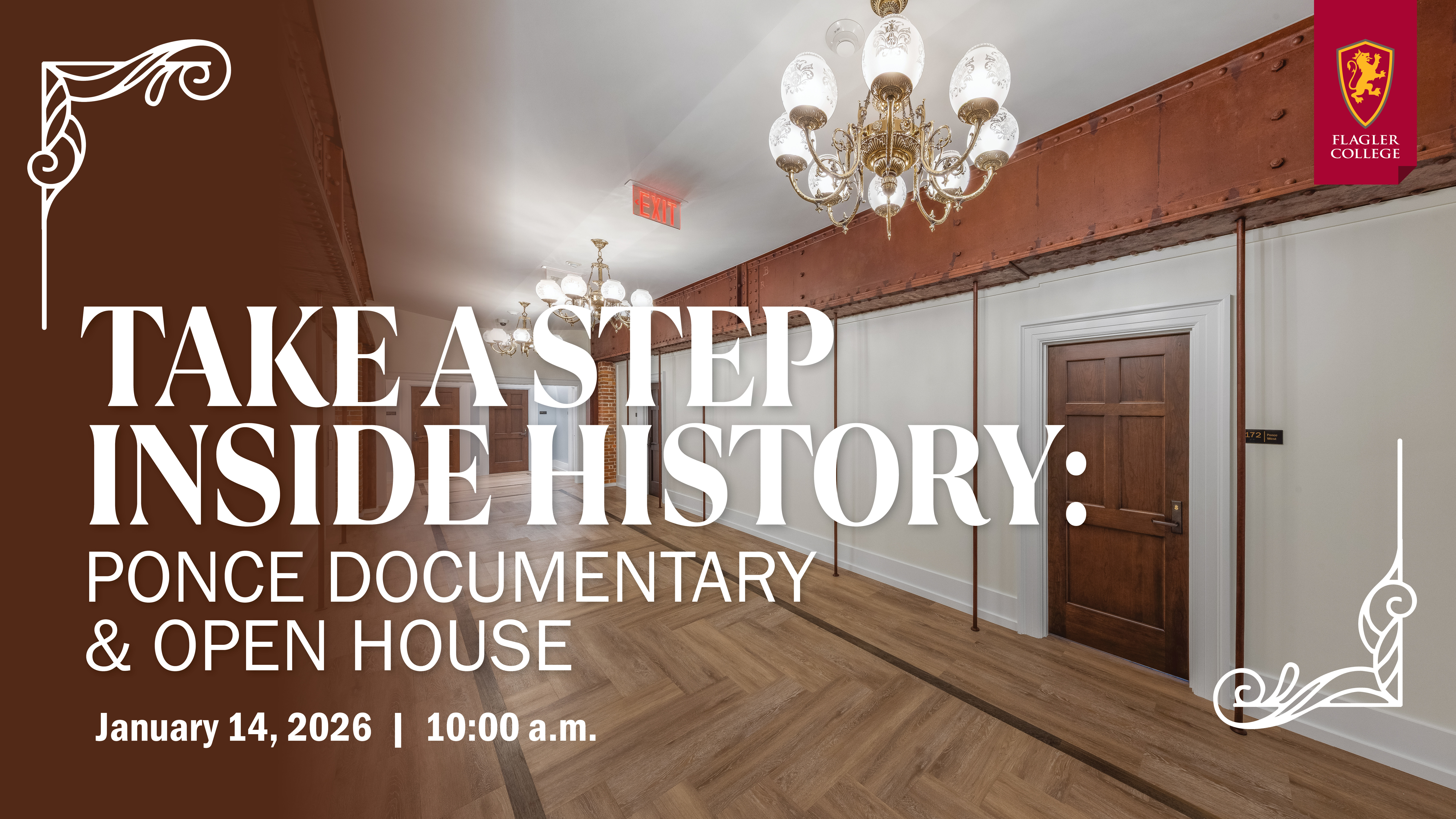 St. Augustine, FL (12/18/2025) — Flagler College will welcome the community for the premiere of Preserving the Ponce, a new documentary celebrating the history and restoration of the former Hotel Ponce de Leon, on Wednesday, Jan. 14, 2026, at 10 a.m. in Lewis Auditorium. The screening will be followed by an open house of the newly renovated Ponce Hall, giving guests a first look at restored spaces and new interpretive exhibits inside one of America's most iconic landmarks.